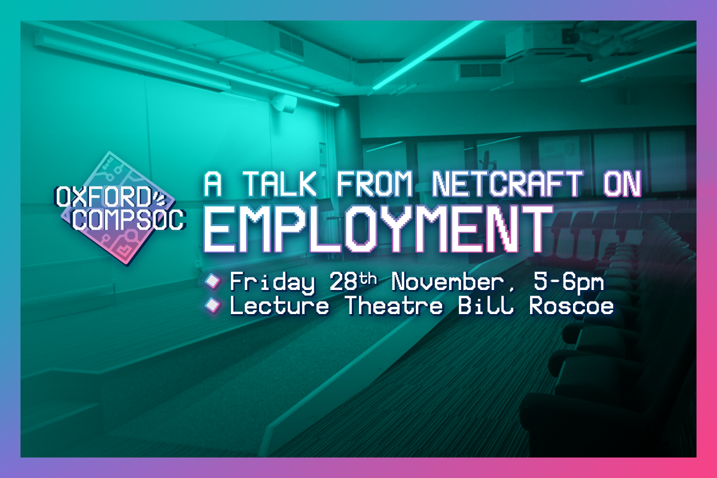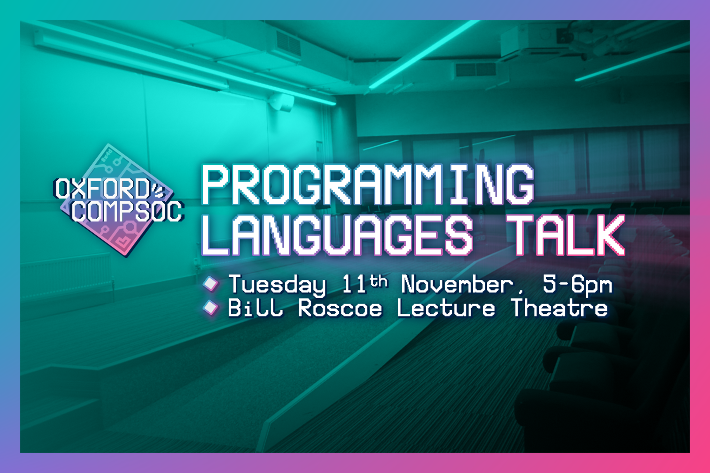 Where: Undergraduate Social Area, Department of Computer Science 7 Parks Rd, Oxford OX1 3QG