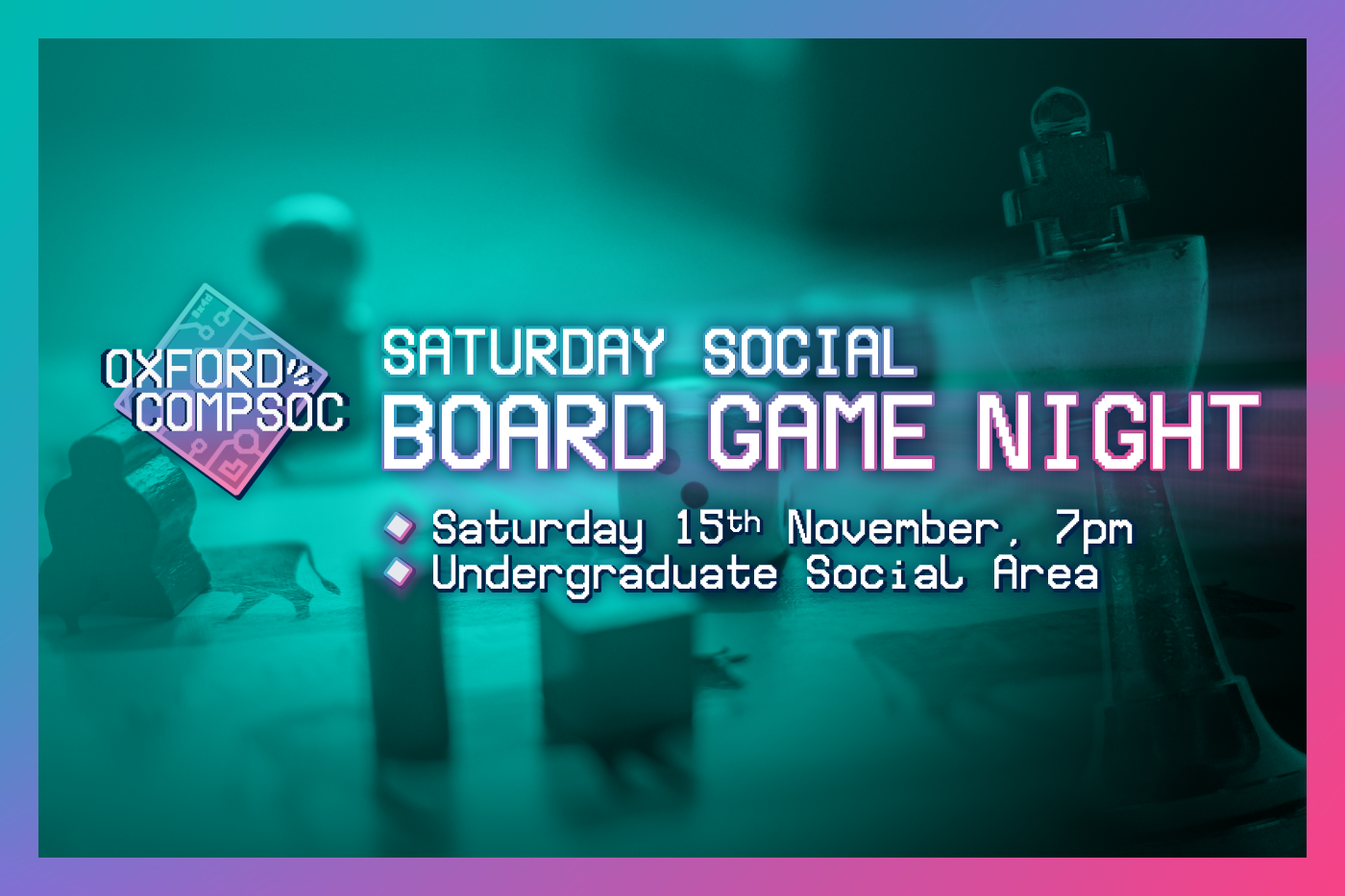 This Saturday, it's time to relax! For the second event in our double header this week, we'll be back in the Undergraduate Social Area as usual for a familiar Saturday Social — a board game night! From 7pm onwards, we'll kick back and enjoy some of CompSoc's wide range of board games, aided and abetted by pizza and snacks. Who could say no?
