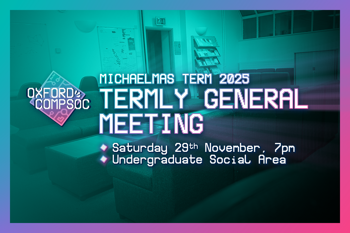 A final note — we'll be holding our Annual General Meeting next term, where we'll be electing a brand new Committee to lead the society forward into pastures anew. If you're interested in contributing to CompSoc, there's a job available for pretty much anyone! A list of our current offices can be found here<https://ox.compsoc.net/committee/>.