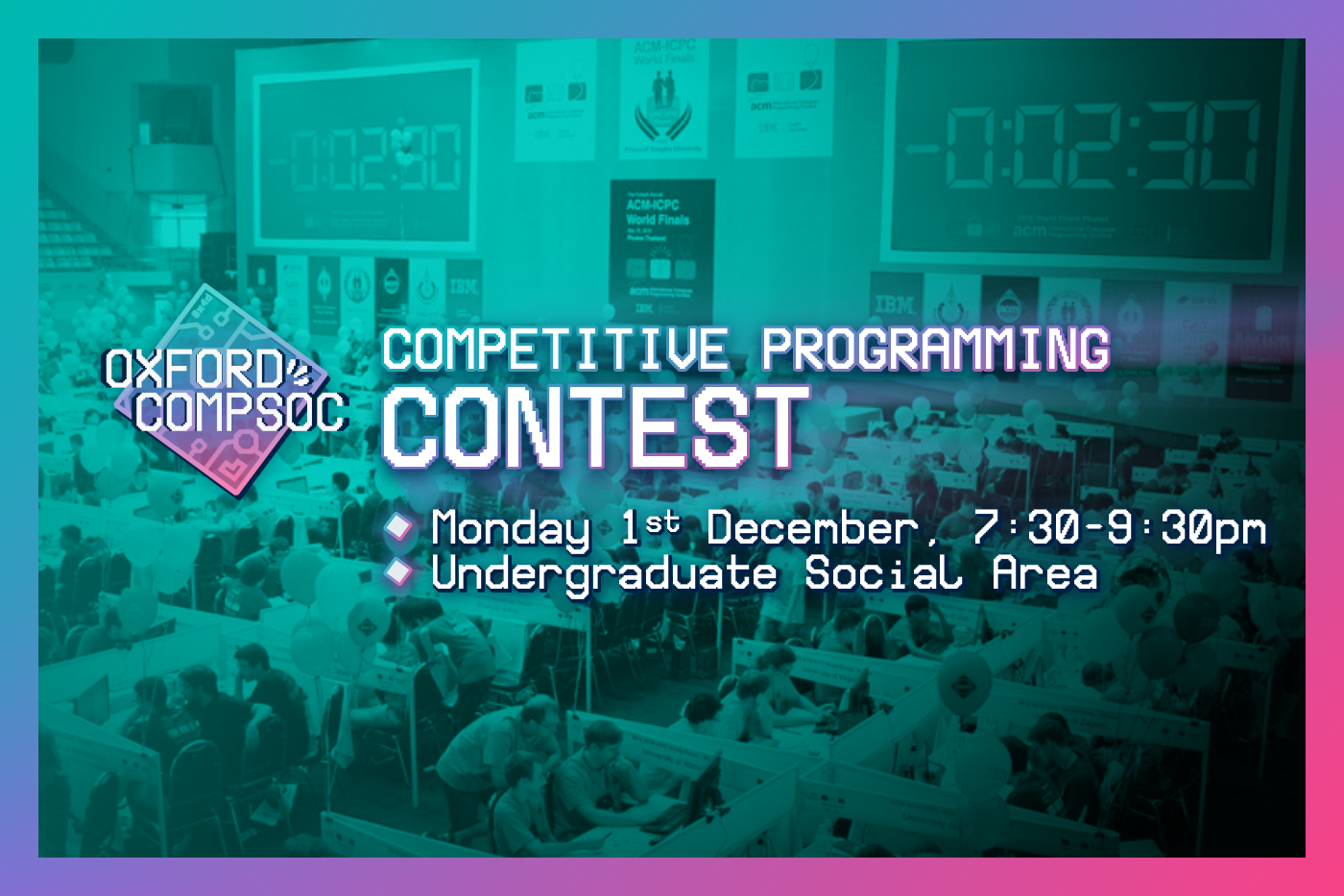 As the term begins, we'll be back in the Undergraduate Social Area on Monday for the first of our competitive programming bootcamps! If you're interested in battling against your peers but don't have any competitive programming experience, come along at 7:30pm!