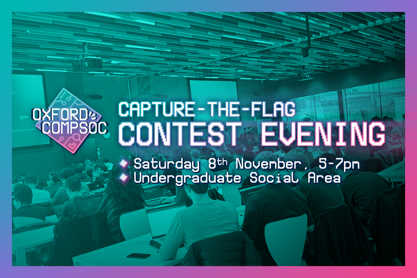 Fancy dipping your toes into the world of cybersecurity challenges? Join us this Saturday, when we'll be in the Department of Computer Science from 5-7pm for an enlightening introduction to the realm of capture-the-flag contests, ahead of several CTF events this term.