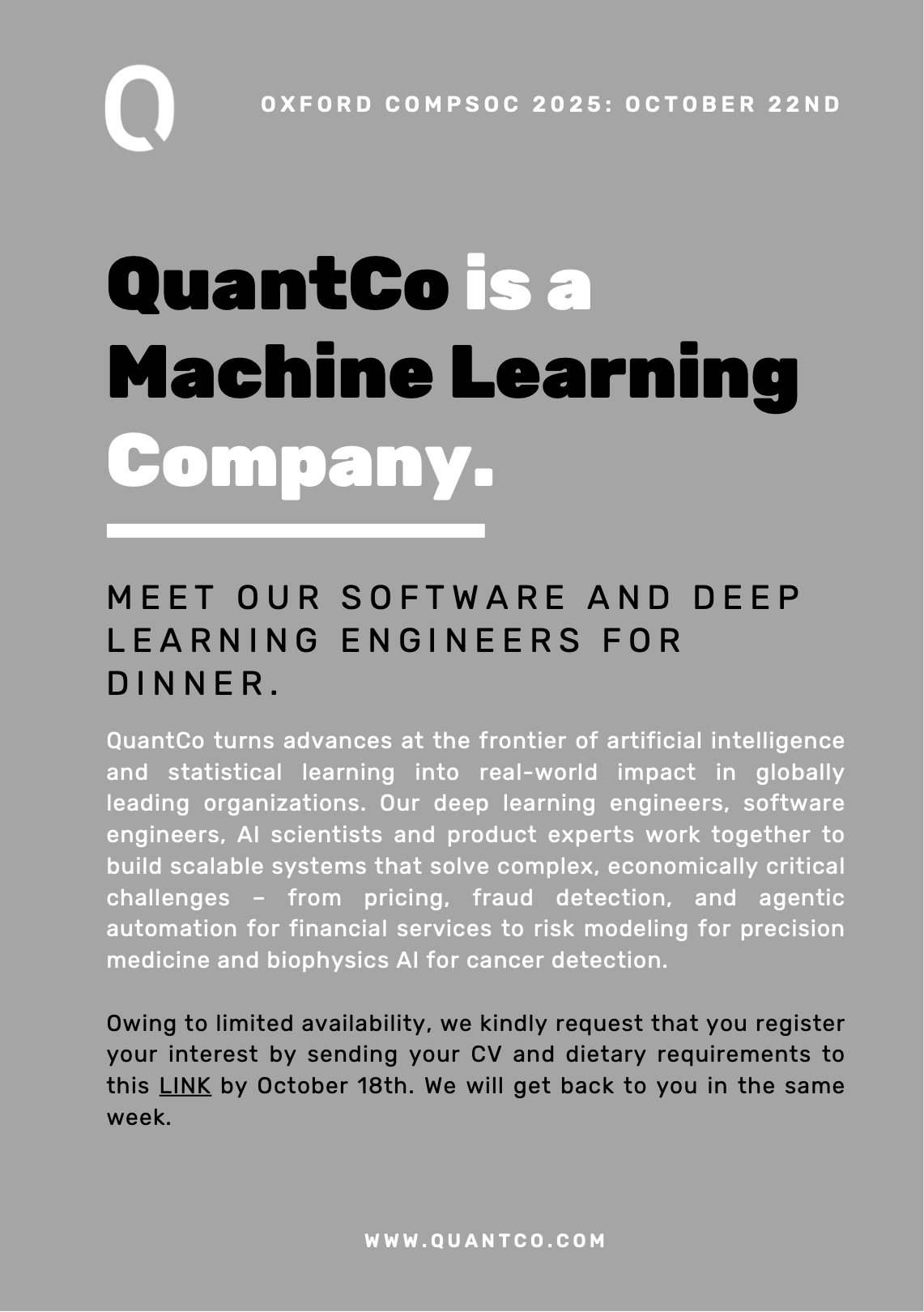 Sign up here by 18th October: https://jobs.lever.co/quantco-/bdb766e9-fe6e-4493-b113-fc230952f324