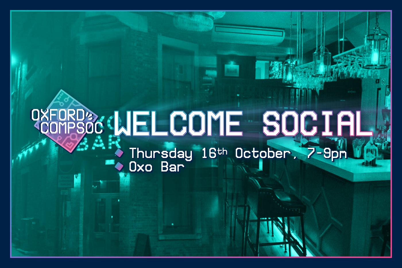 Feeling stressed out already on day four of the new academic year? New and old members alike are invited to come and relax this Thursday at our welcome social! From 7-9pm, we'll be kicking back and relaxing at Oxo Bar with free drinks on CompSoc! Come along and meet new faces amongst lively conversation!