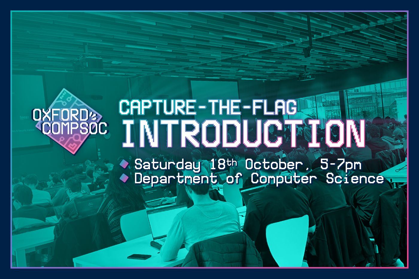 Fancy dipping your toes into the world of cybersecurity challenges? Join us this Saturday, when we'll be in the Department of Computer Science from 5-7pm for an enlightening introduction to the realm of capture-the-flag contests, ahead of several CTF events this term.